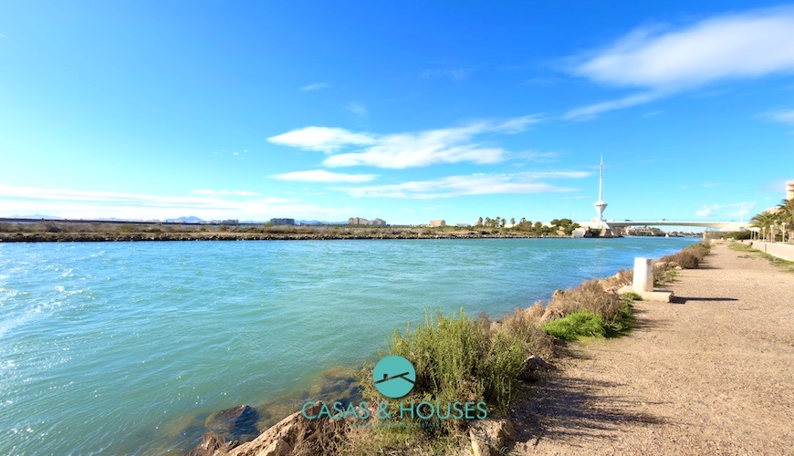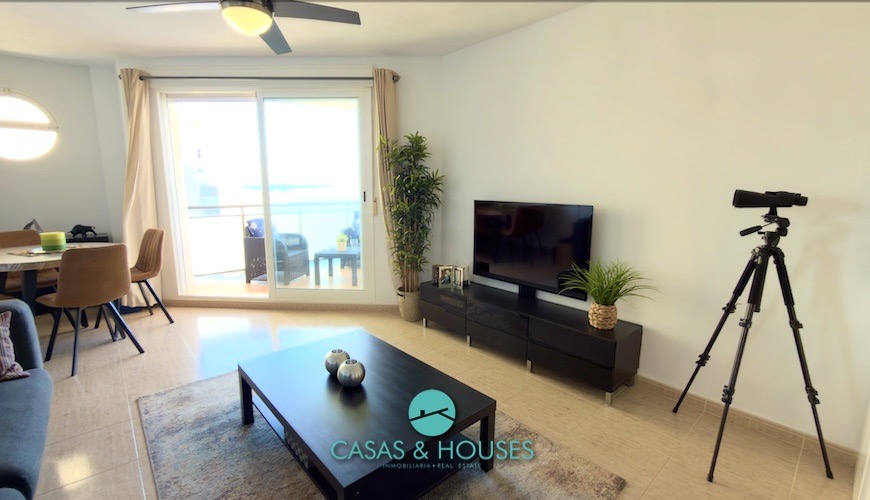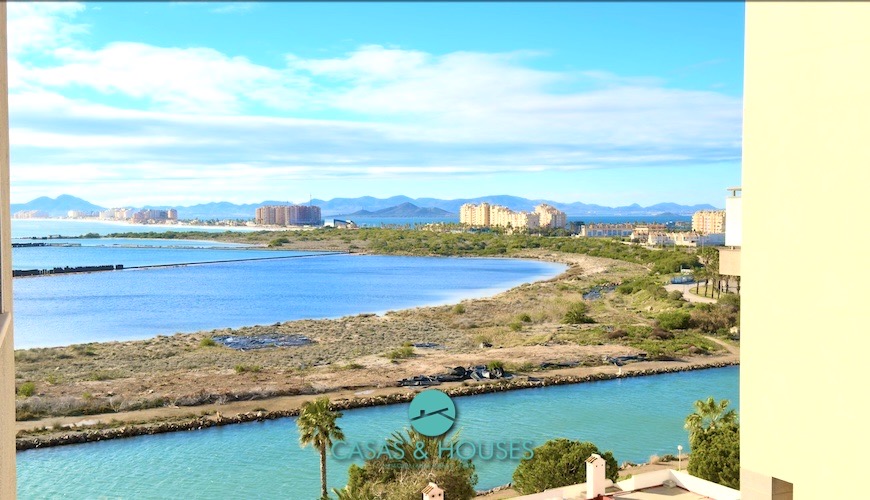 Imagine waking up each morning to the Mediterranean sun streaming through the wide windows and enjoying unforgettable sunsets from your private terrace. This spectacular seventh-floor apartment in the Puerta del Mediterráneo residential complex, at km 13 next to the El Estacio lighthouse in La Manga del Mar Menor, offers you that dream life right on the frontline beach, with breathtaking open sea views.