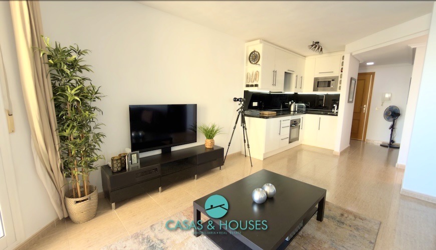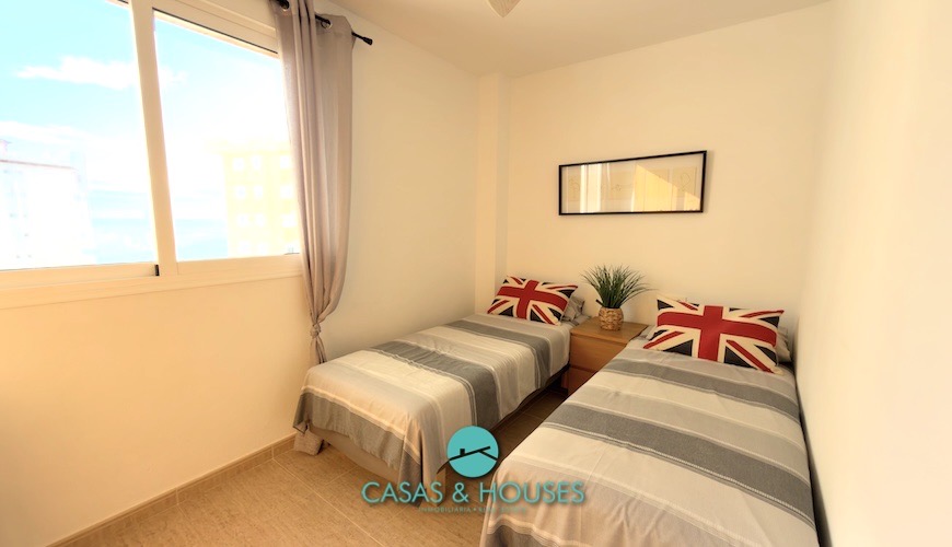 Storage is smart and abundant, with a storage cupboard right in the entrance hall and practical solutions in the bedrooms and common areas, so everything is always in its place. On the seventh floor, with that enviable ventilation, northwest sunsets, and sunny southeast mornings, this apartment in Puerta del Mediterráneo is the gem you’re looking for: comfortable, stylish, frontline with pool, lifts, and the sea at your feet. Your Mediterranean paradise awaits.