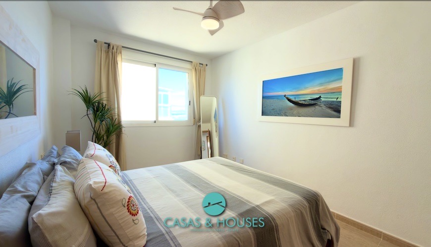 Step into a unique and super functional interior layout, where every detail is designed to make the most of light, views, and space. The main bedroom, spacious and cozy, awaits you with a large double bed, fitted wardrobes, and ceiling fans for restful nights. The guest bedroom, with twin beds, fitted wardrobe, and its own fan, is perfect for family or friends, bathed in soft southeast light. All rooms boast privileged views and exceptional natural ventilation, thanks to the height and dual orientation that makes everything flow harmoniously.