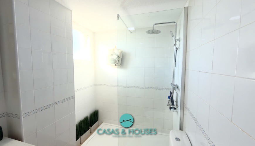 The refurbished bathroom is a spacious and ventilated oasis, with a walk-in shower, window for natural light, and a double sink that makes it ideal for a family apartment full of life. That window is a coastal luxury: it keeps everything fresh and humidity-free, ready for your best memories. The impeccable finishes leave it all set for you to move in right away.