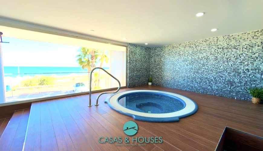 Thanks to its privileged south-facing orientation, the property enjoys abundant natural light throughout the day and offers stunning panoramic views of the Mediterranean Sea. A truly unique setting that becomes the perfect backdrop for everyday living. Moreover, it is located just 20 metres from the beach: stepping out of your home and onto the sand is a genuine luxury, with the sea breeze and the sound of the waves always present.