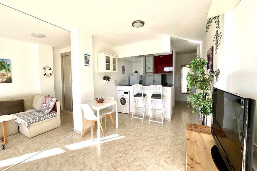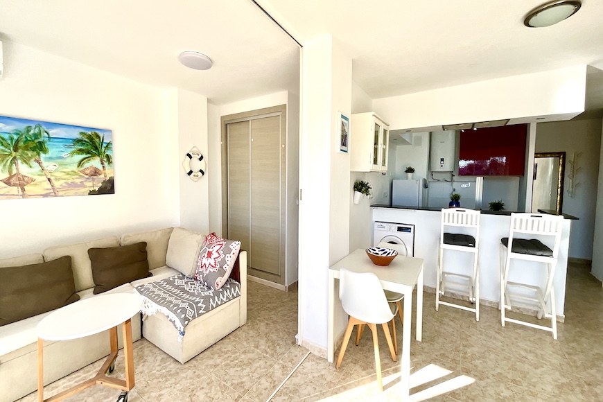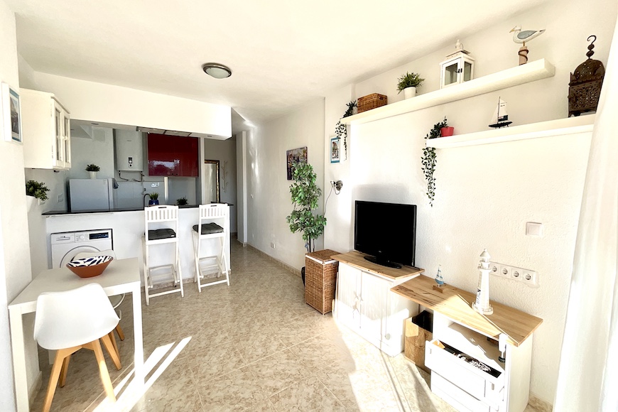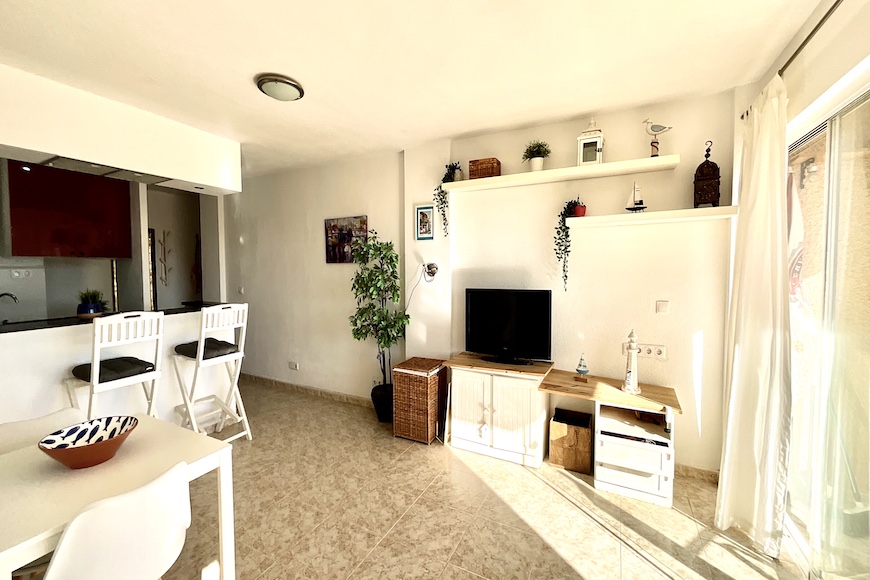 Fantástico apartamento reformado en el residencial Las Bahamas en el corazón de La Manga, junto a la plaza bohemia. Tiene un amplio salón- comedor con una terraza con vistas a zonas verdes. La cocina reformada, abierta al salón, totalmente equipada. Tres habitaciones una de ellas habilitada como sala de estar y un baño completo.