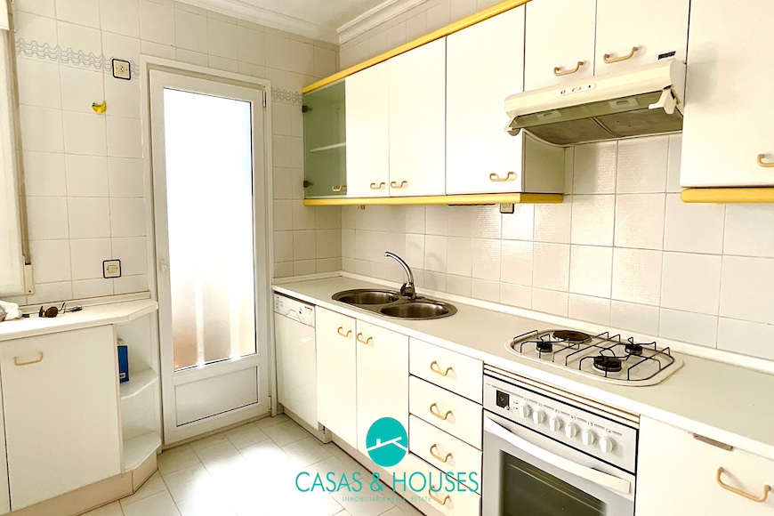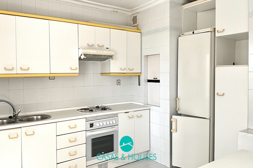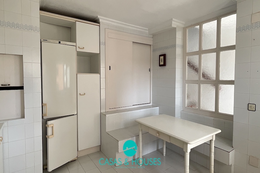 está distribuida en la planta baja; cocina- estar con despensa y una galería, en la primera planta encontramos dos dormitorios; el principal con vistas al mar, baño en suite con pie de ducha y bañera, los dormitorios disponen de armarios empotrados.