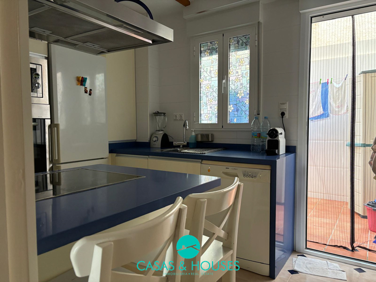 Se accede a la vivienda a través de una terraza privada que conduce directamente al salón/comedor,al acceder a la casa lo haremos directamente al salón, de buen tamaño, muy luminoso. En esta misma planta encontraremos también la cocina reformada, muy amplia y amueblada, junto a ella un patio.