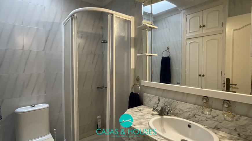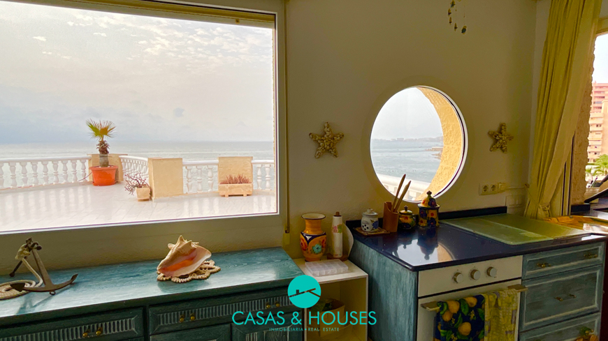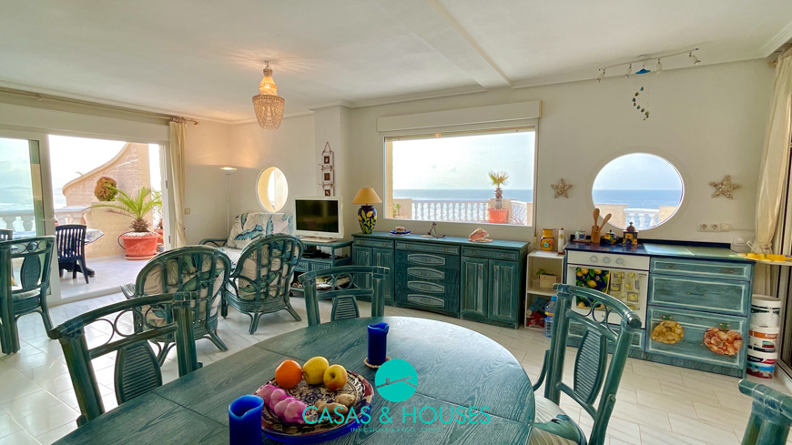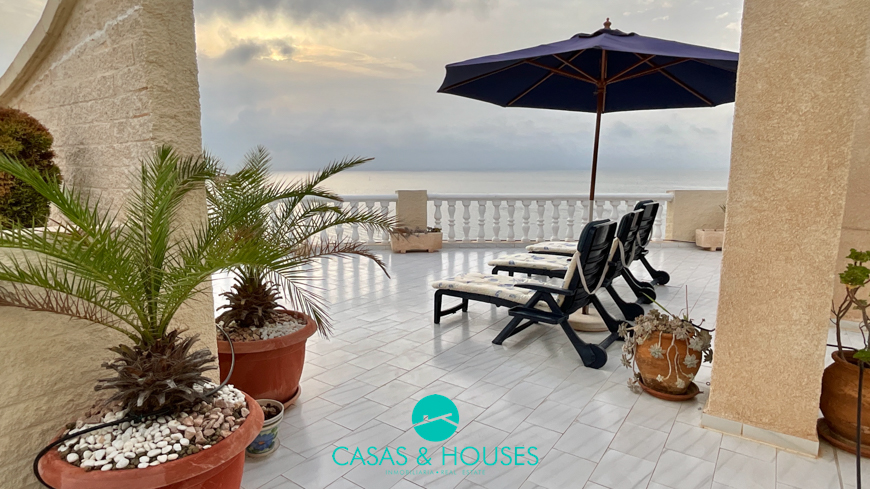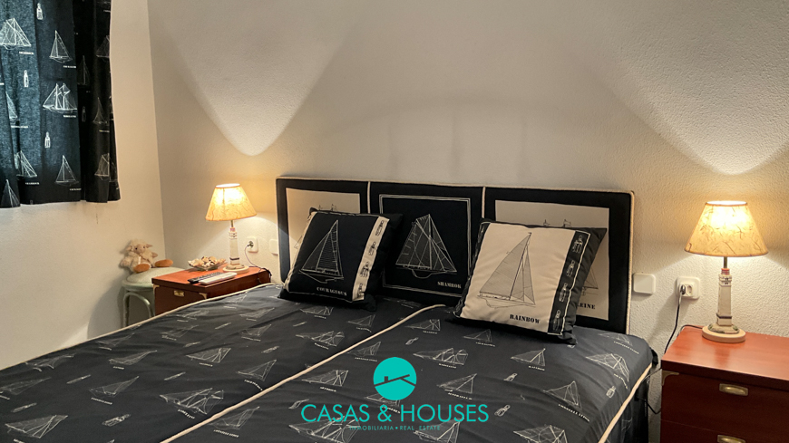 Esta urbanización se encuentra en una zona privilegiada frente al mar, la vivienda está distribuida en la planta baja; pequeño estudio con baño y cocina, en la primera planta encontramos tres dormitorios con armarios empotrados y dos baños completos.