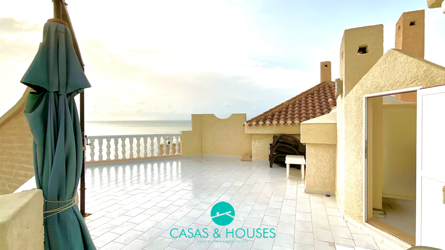 Ático dúplex con 3 dormitorios en Pedrucho Mar, en una urbanización cerrada con jardines bien cuidados y piscina comunitaria.