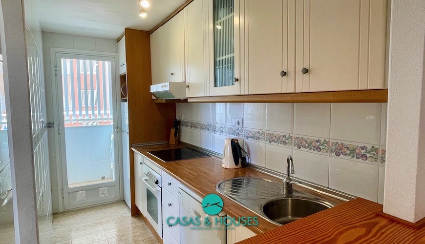 La cocina independiente está completamente equipada con electrodomésticos, incluyendo lavavajillas y lavadora, y cuenta además con acceso a un práctico lavadero y zona adicional de almacenamiento.