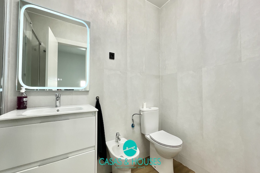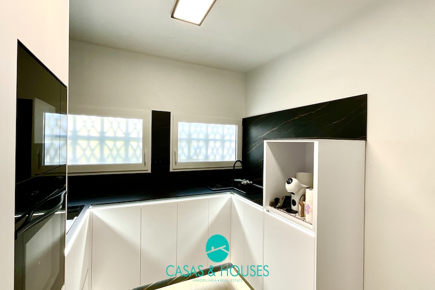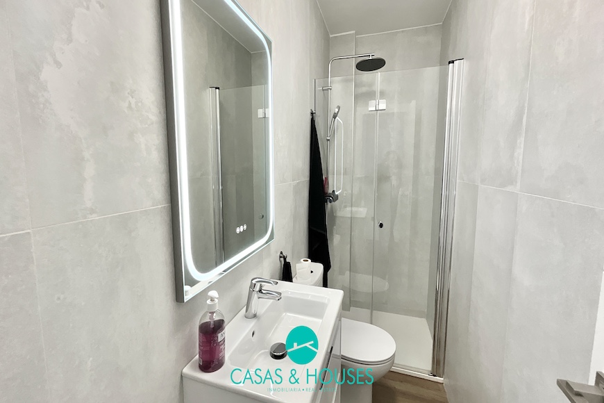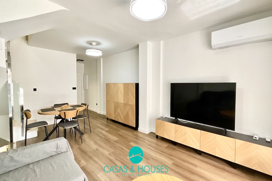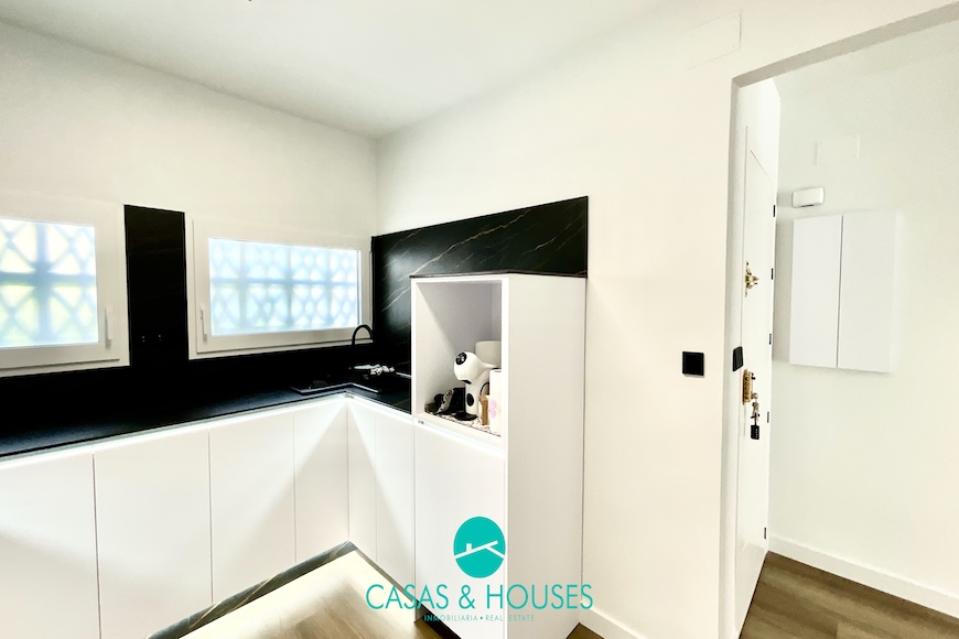 El apartamento consta de una luminosa sala de estar-comedor, una cocina totalmente equipada de diseño moderno y funcional y un baño. Cada detalle ha sido cuidadosamente considerado en la renovación, incluyendo carpintería interior, suelos, aire acondicionado eficiente en energía para calefacción y refrigeración, mejorando la comodidad y funcionalidad.